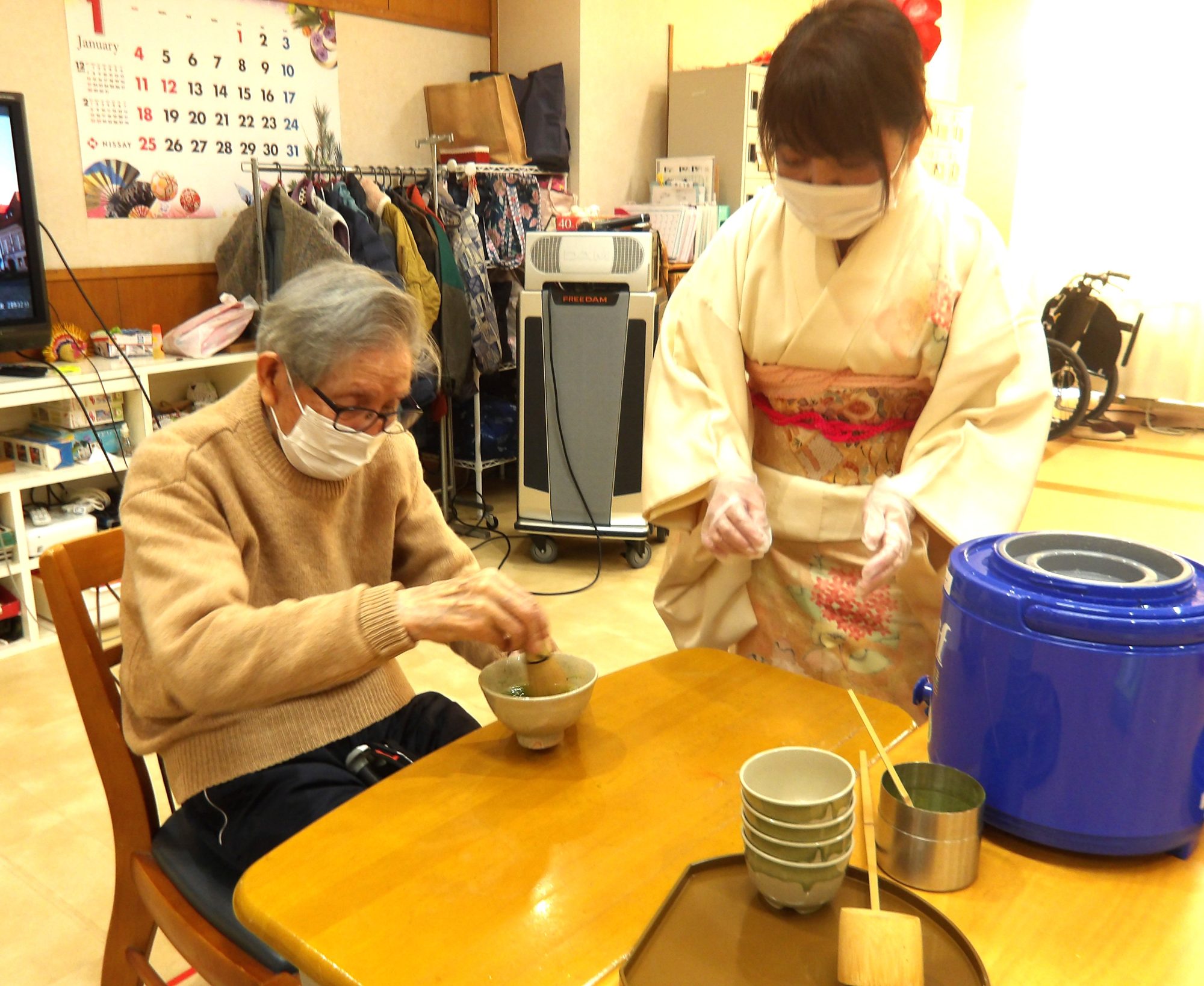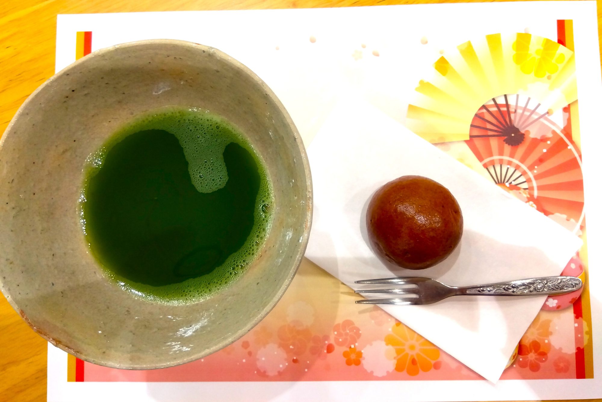 自分でお抹茶をたてて、お饅頭とともに召し上がっていただきました。